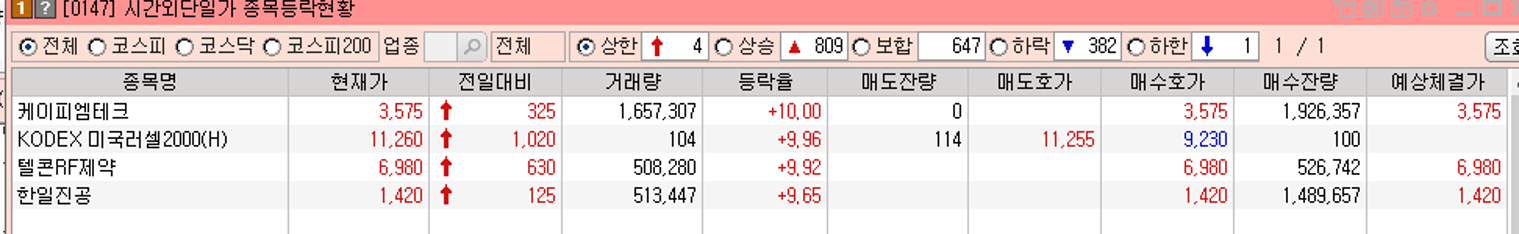 안녕하세요. 왠만하면 장 끝나면 쉬려고 했는데, 케이피엠테크, 텔콘RF제약, 한일진공이 시간외로 급등하면서 포스팅을 하게 되었습니다.