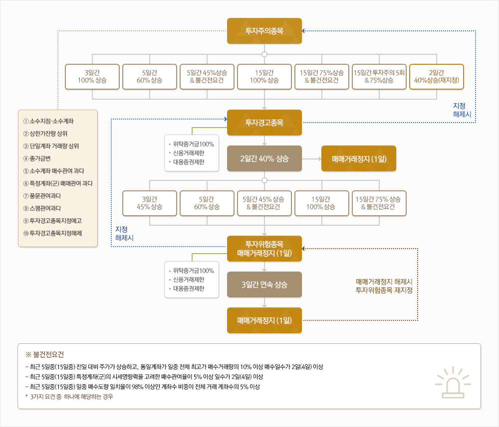 시장경보제도는 「투자주의종목 → 투자경고종목 → 투자위험종목」 의 단계를 거쳐 이루어지게 됩니다.