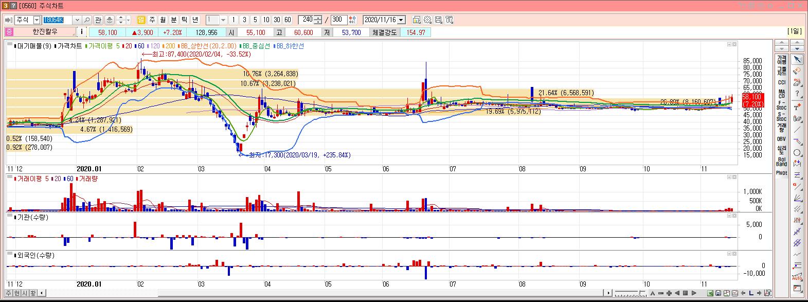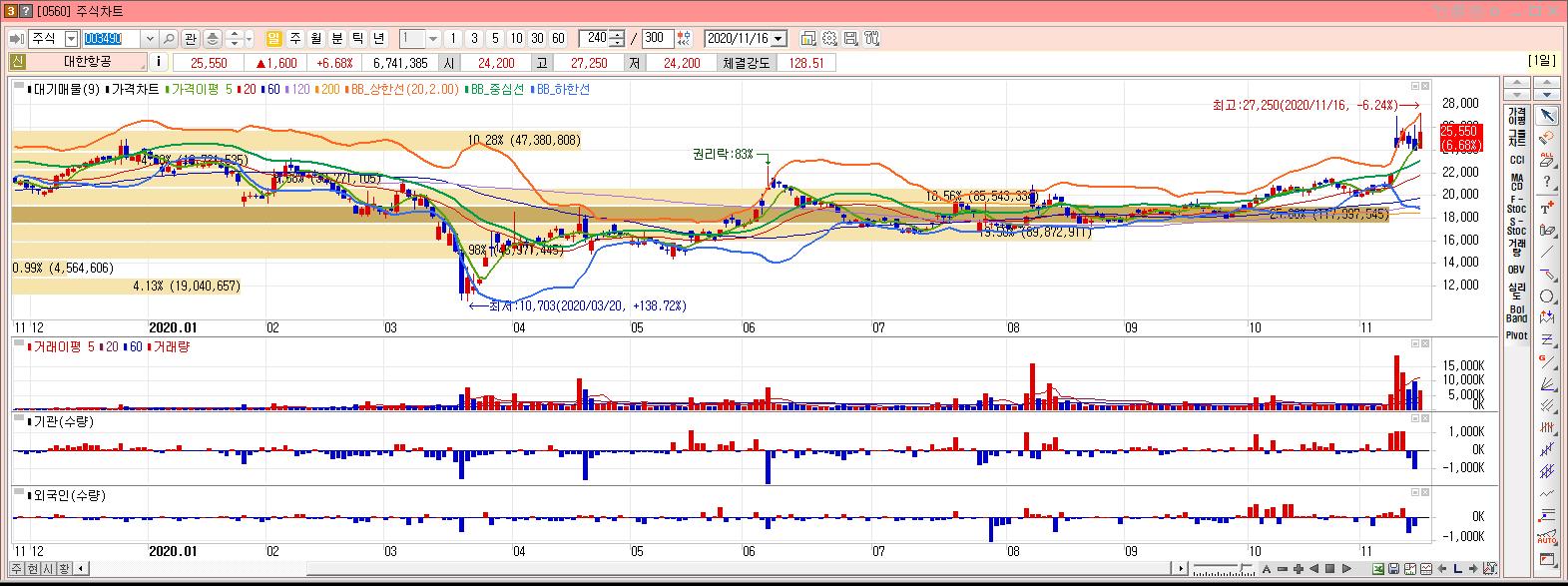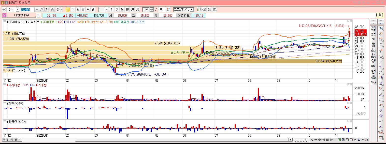 그로인해 산업은행에서 관리체계로 관리를 하고 있었으나, 현재 대한항공이 인수한다는 소식에 주가가 급등중 입니다.