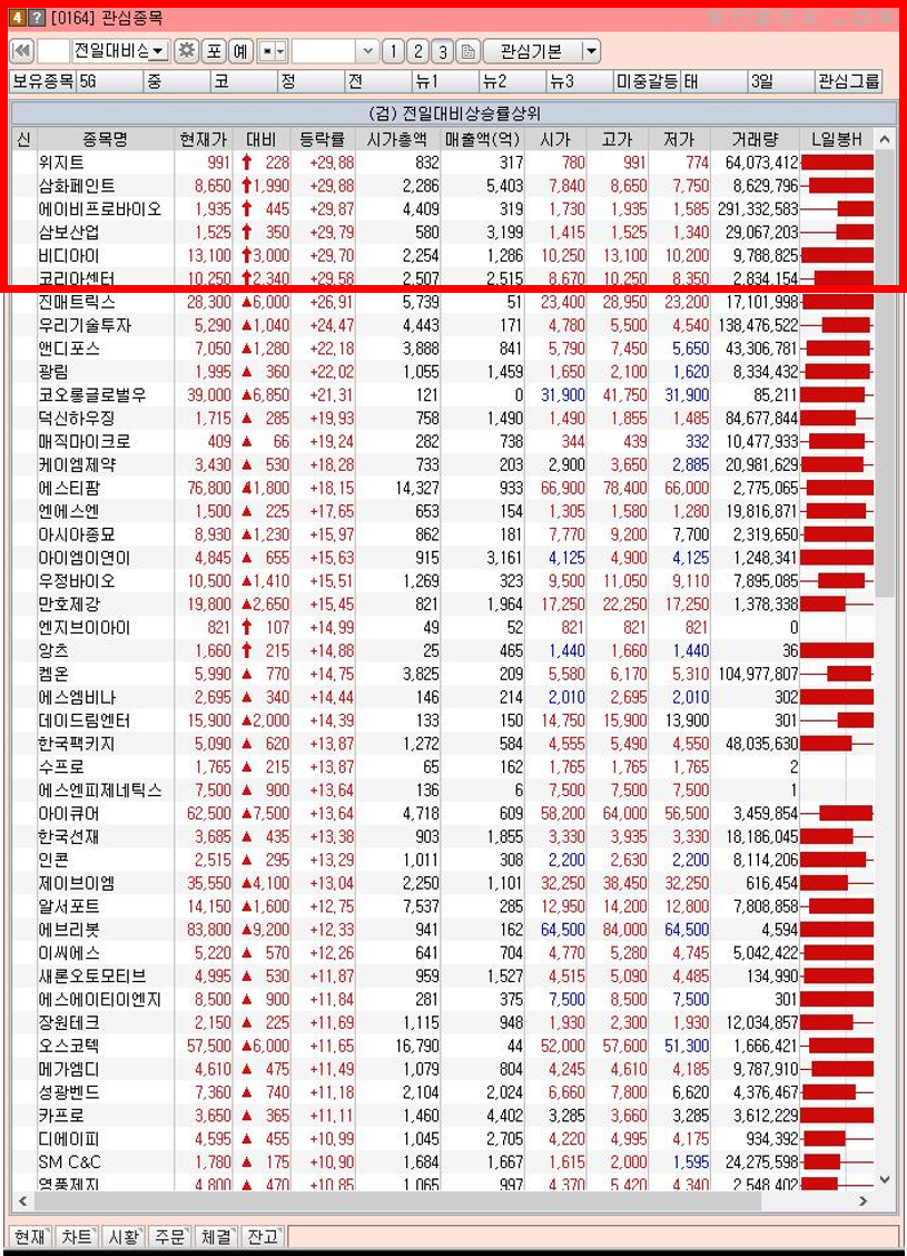 금일 장이 마감되어서 상한가 및 급등 종목들에 대해 정리 해보겠습니다.