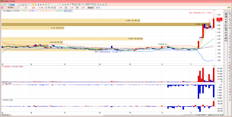 12. 대한해운 : 해상 화물운임이 또 최고치를 경신하며, 해상화물주들이 급등