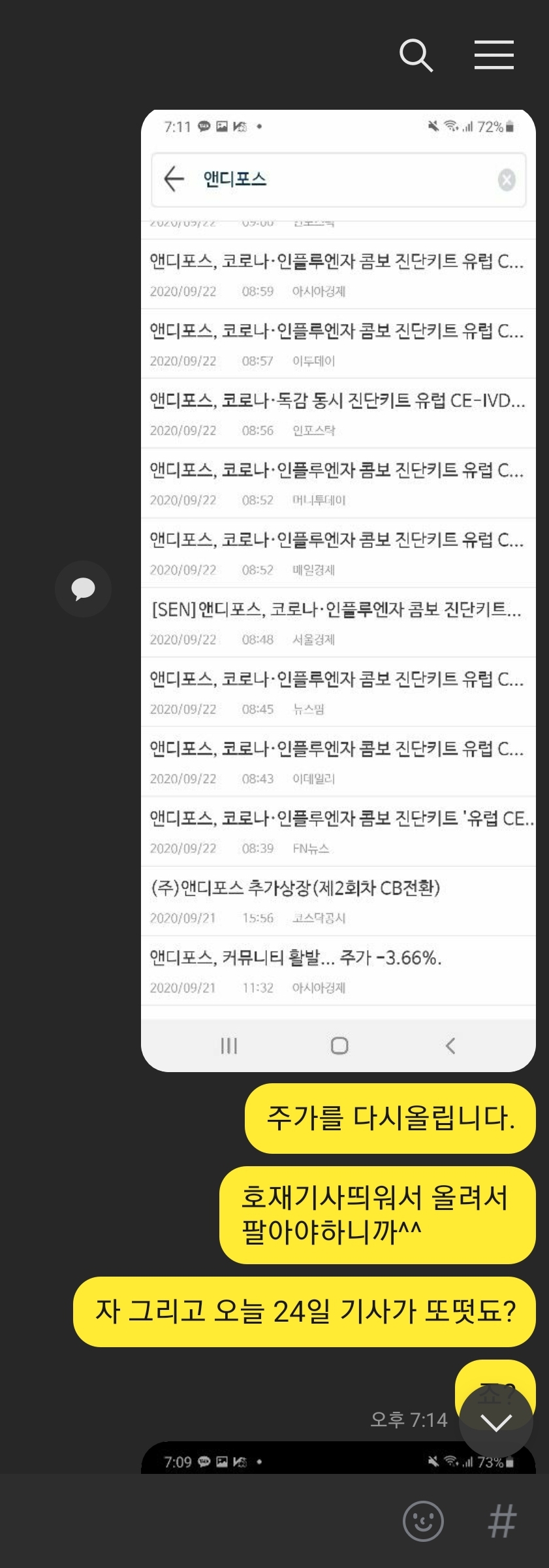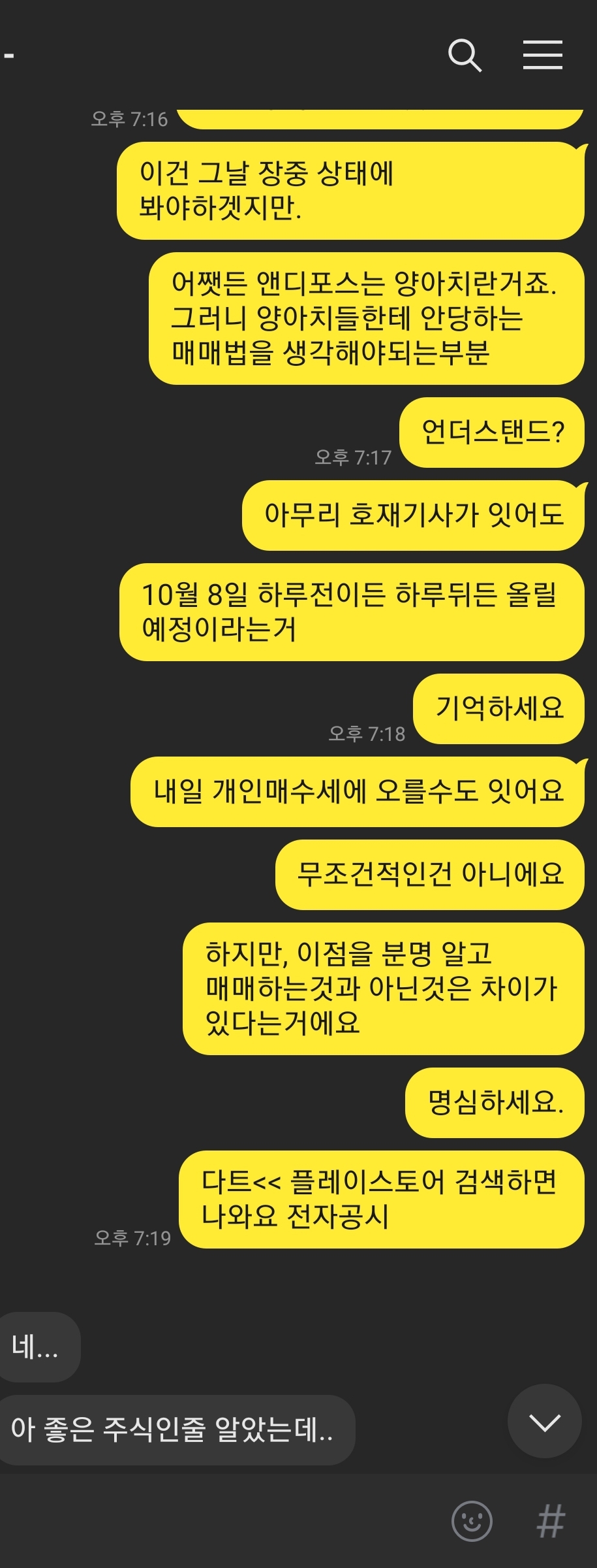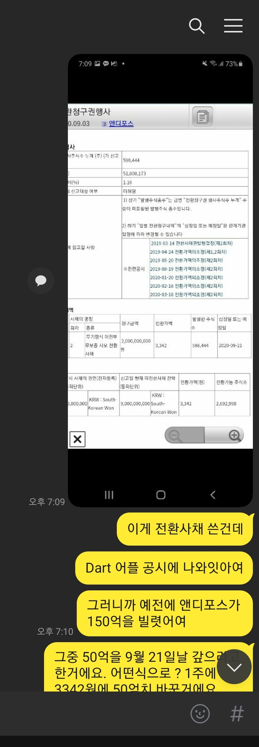 하지만, 신주 즉 채권자가 주식으로 변경 후 최대한 이익을 봐야 하기 때문에 호재 공시를 뛰웁니다. 참 이부분이 아이러니하죠? 위 카톡 내용을 보시면 쉽게 이해 하실 겁니다.